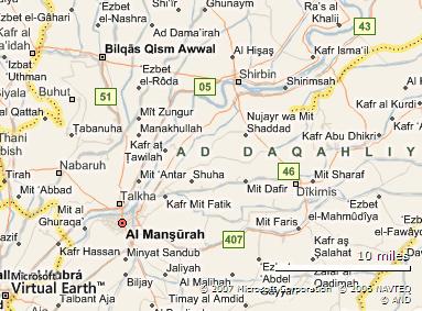 Again the victim is a woman "Fatima Fatahi Mohammed" from the city of "Dikirnis" . she entered the "Dikirnis " hospital on the 27th of December ,she was transferred to the "Mansoura" general hospital in the capital of the Governorate but unfortunately she died in her way already as you can see Al-Mansurah and Dikirnis in the map I posted below