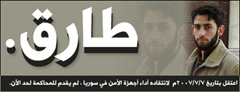 Here are couple of Websites and groups made by the Syrian activists supporting Tarek , whom I believe is less luckier than Fouad El-Farahan and infamous Karim Abdel Karim , and that's why we should all speak in our blogs internationally about him :